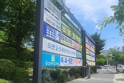 땡볕 가림막은 시중 제품과 달리 무늬와 문구가 제각각입니다.
